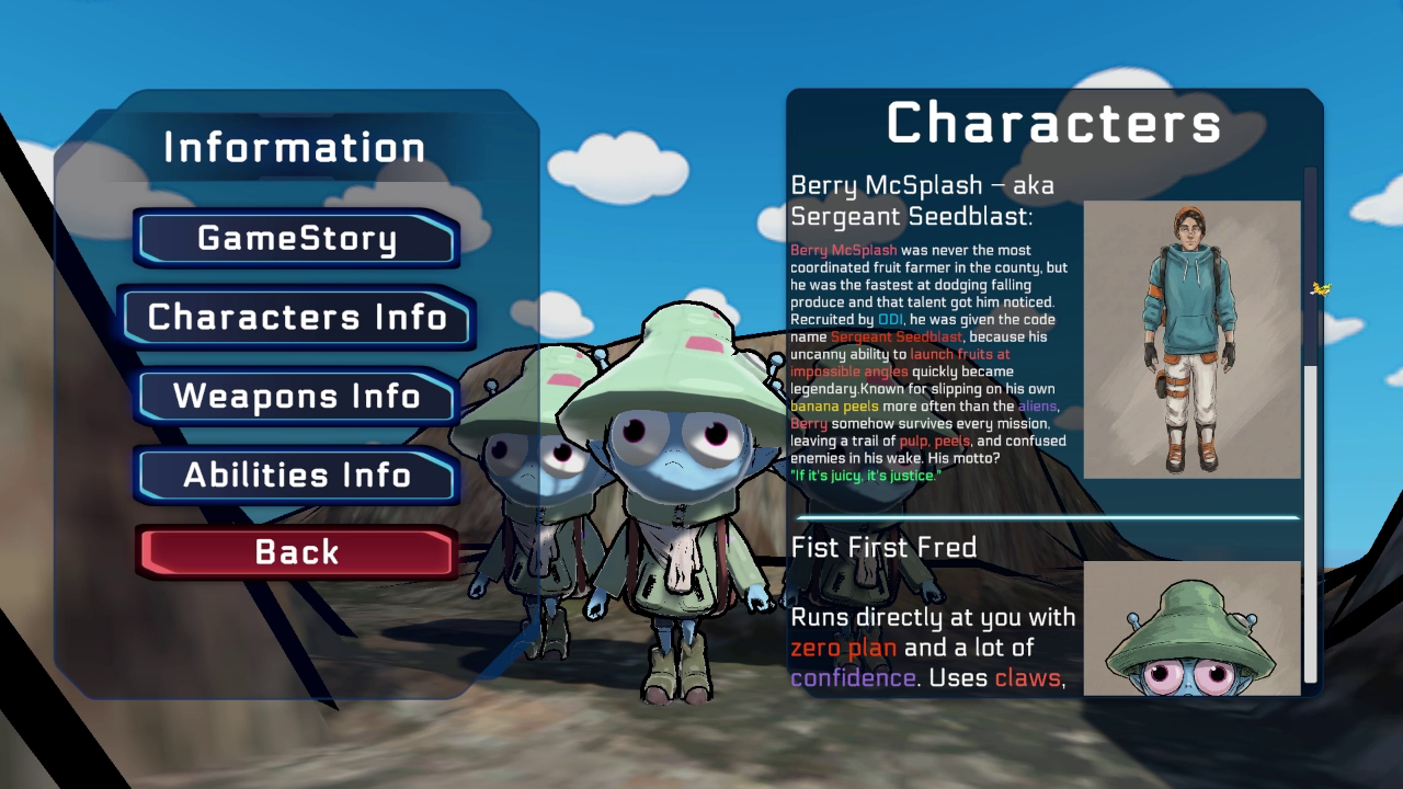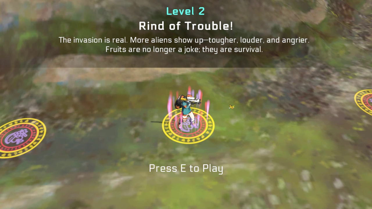 When aliens arrived hunting for an ancient artifact, they didn't expect our fruit to be lethal. As one of ODI's last couriers, you're carrying the artifact they desperately seek, and you'll defend it with weaponized produce. Clear waves of collectors with fruit-based firearms, harvest their glowing essence capsules for combat enhancements, and survive long enough to keep Earth's secret safe!